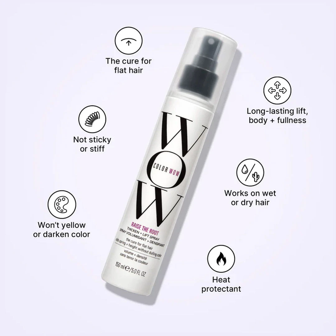 Color WOW Raise The Root Thicken and Lift Spray 150ml is the perfect solution for fine, flat hair that needs long-lasting volume. This spray will not yellow or darken your coloured hair, and it works on both damp and dry hair.
