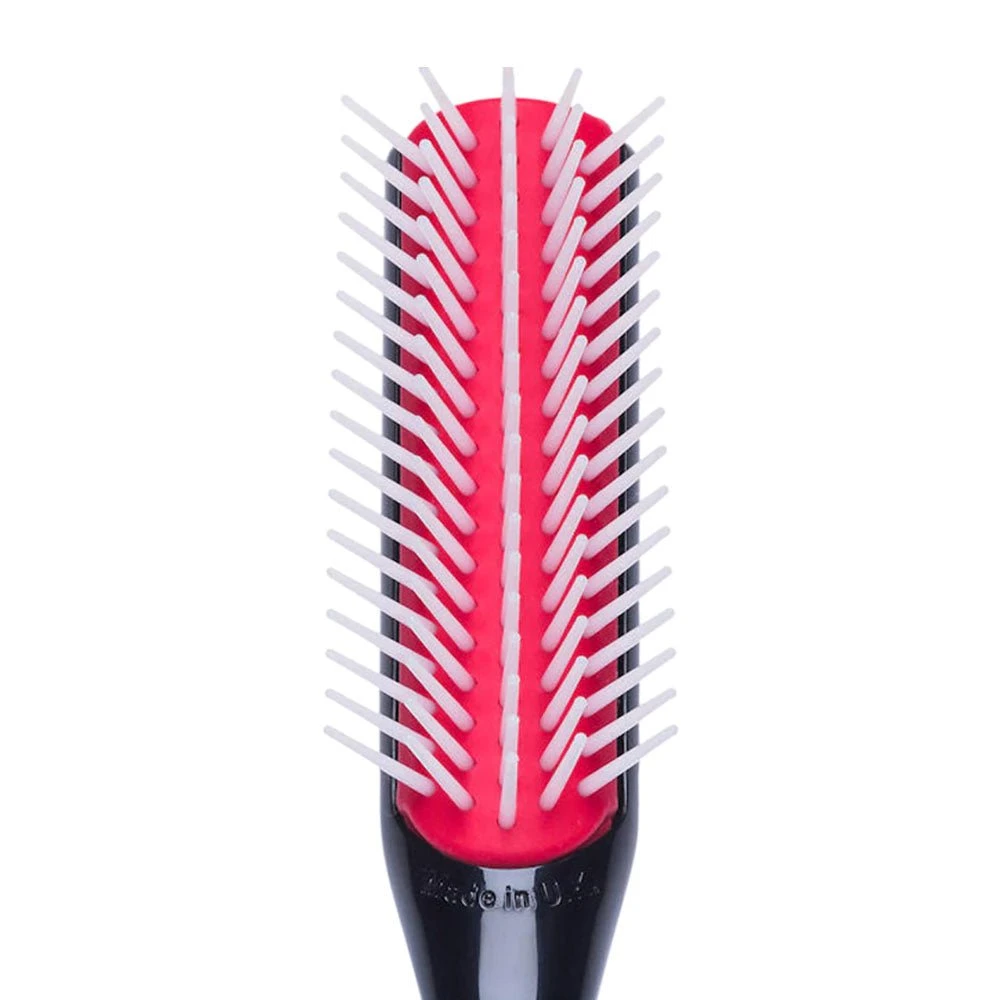 The unique sculpted pins deliver the ultimate in controlled styling and natural curl definition. Five rows of sculpted round-ended nylon pins separate, shape hair and define curls when hair is wet. The styling edges of the half-round brush create tension when shaping the hair during blow-styling. Unique pin pattern provides deliver extra grip and tension, with an anti-static rubber pad for maximum grip and control.