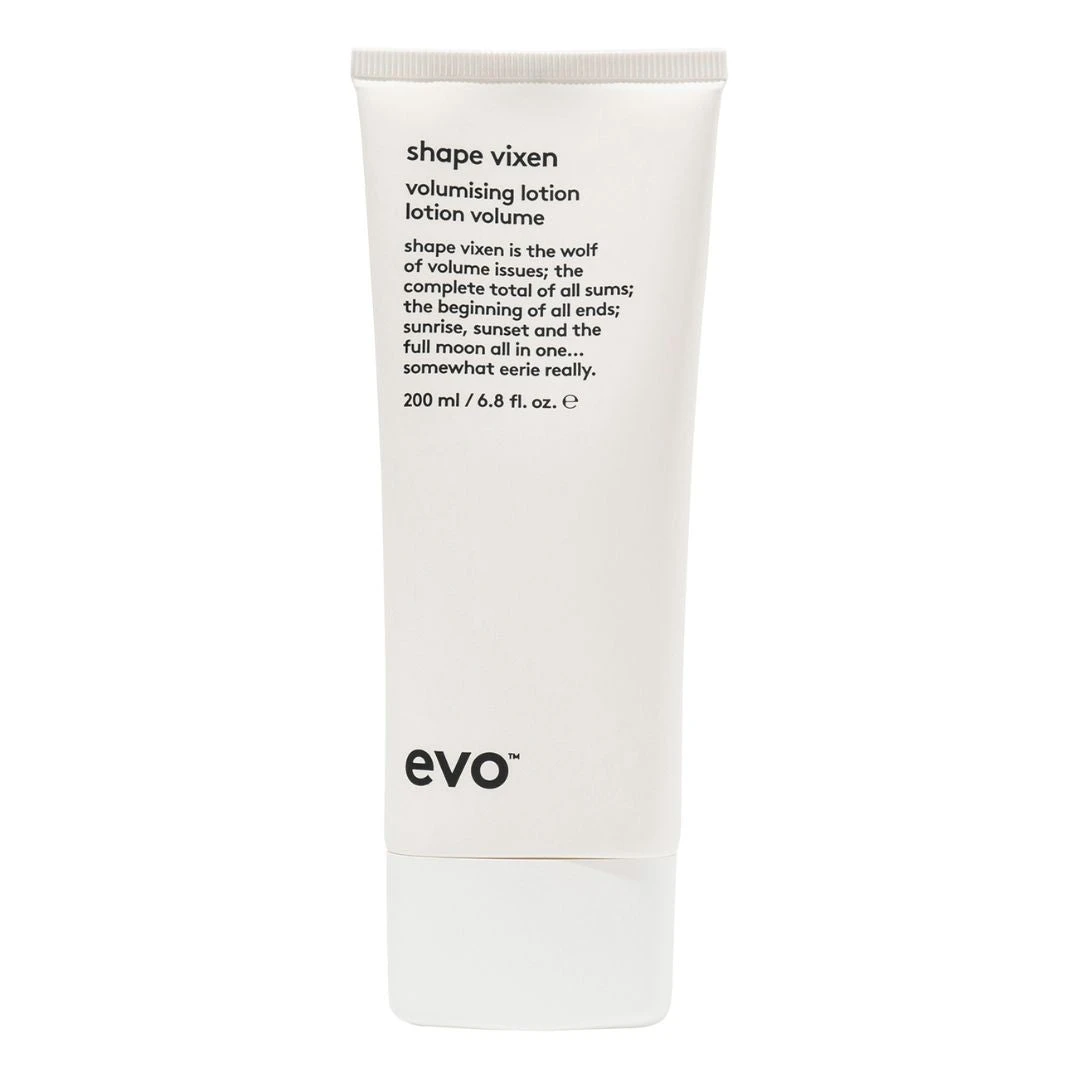 evo Shape Vixen Volumizing Lotion enhances fullness, style support and shape memory, helping to maximise body in finer hair. this hair styling lotion offers humidity resistance, helping to reduce frizz while boosting volume. Added hydrolyzed quinoa helps to strengthen and protect fragile hair while enhancing colour vibrancy.Â