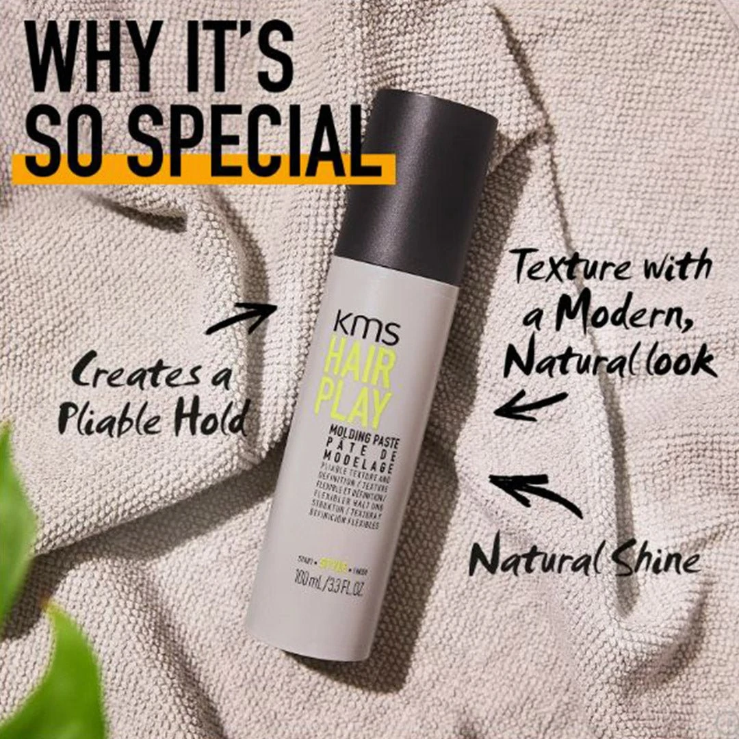 KMS Hair Play Molding Paste provides texture with a modern, natural finish. Creates a pliable hold with natural shine. Helps control medium to coarse hair.