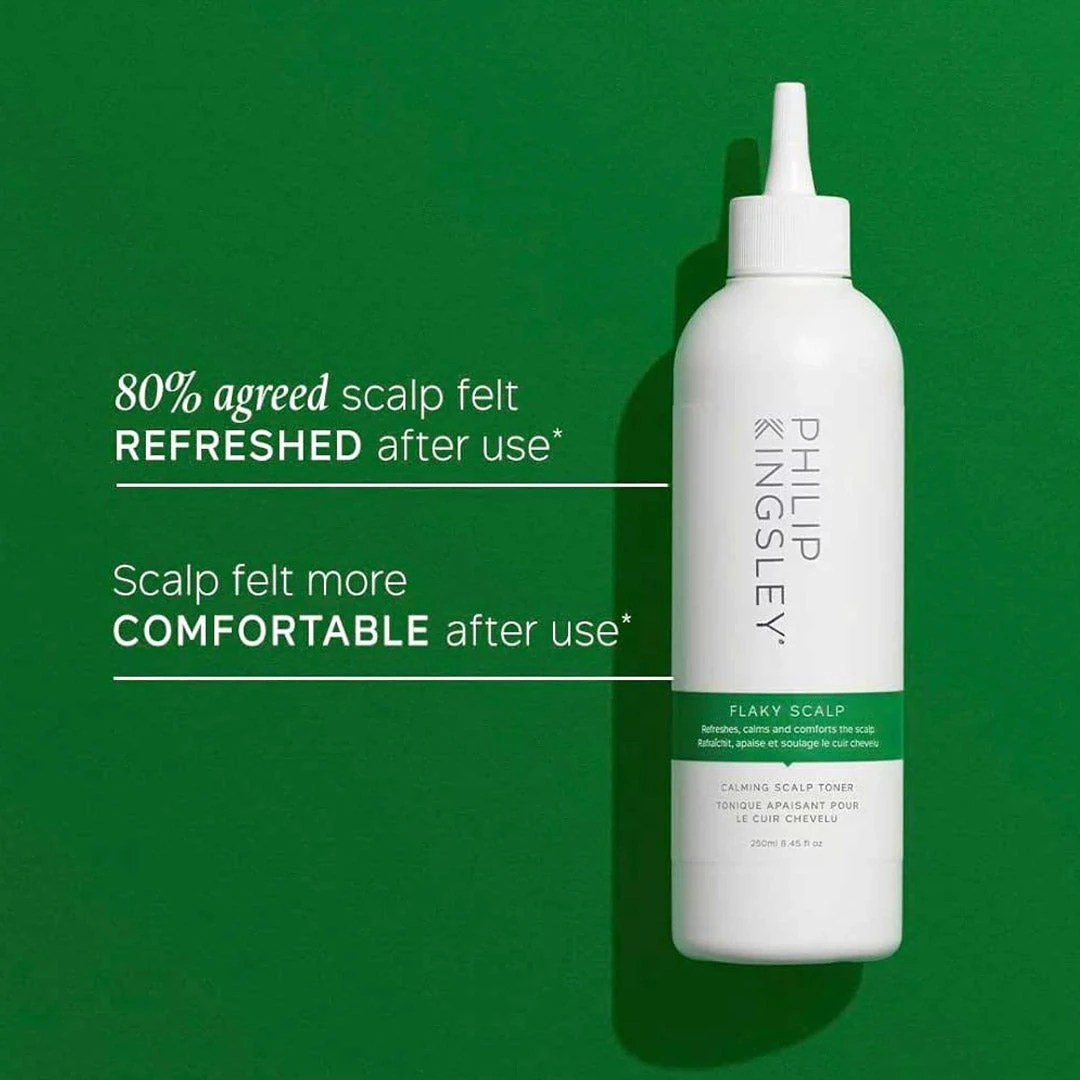 Philip Kingsley Flaky Itchy Scalp Toner 250ml contains an anti-microbial formula that offers immediate and long-lasting relief from flaking and itching. It is specially designed to address scalp concerns, preventing the recurrence of dandruff and the build-up of dead skin cells with long-term use.
