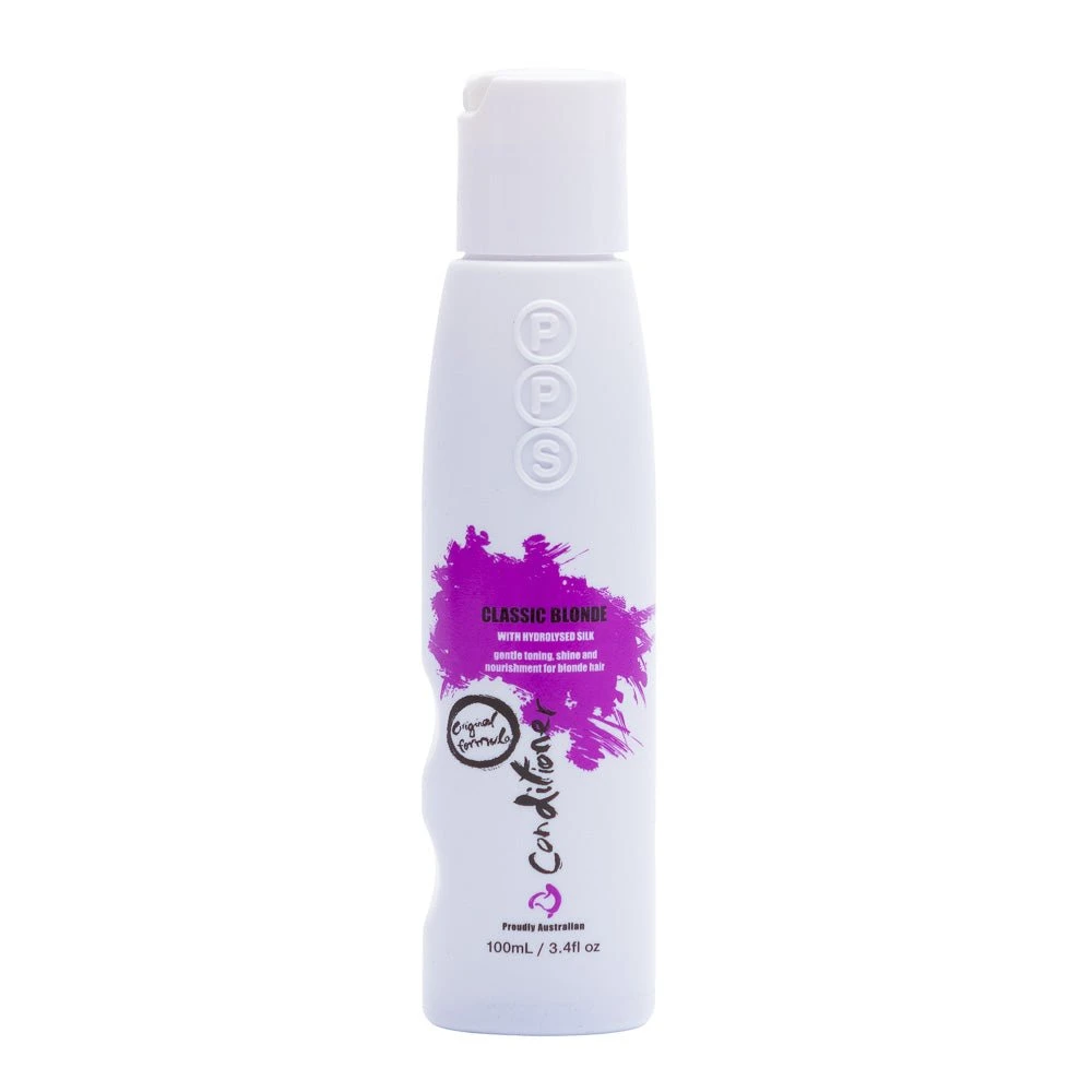 PPS Classic Blonde Conditioner 100ml is a light-weight conditioner enriched with proteins to help maintain cool or neutral colour tones to warm gold or yellow blonde hair. Strengthening damaged hair fibres and helps to nourish the hair structure and is designed to detangle hair as it rinses and improve overall manageability.