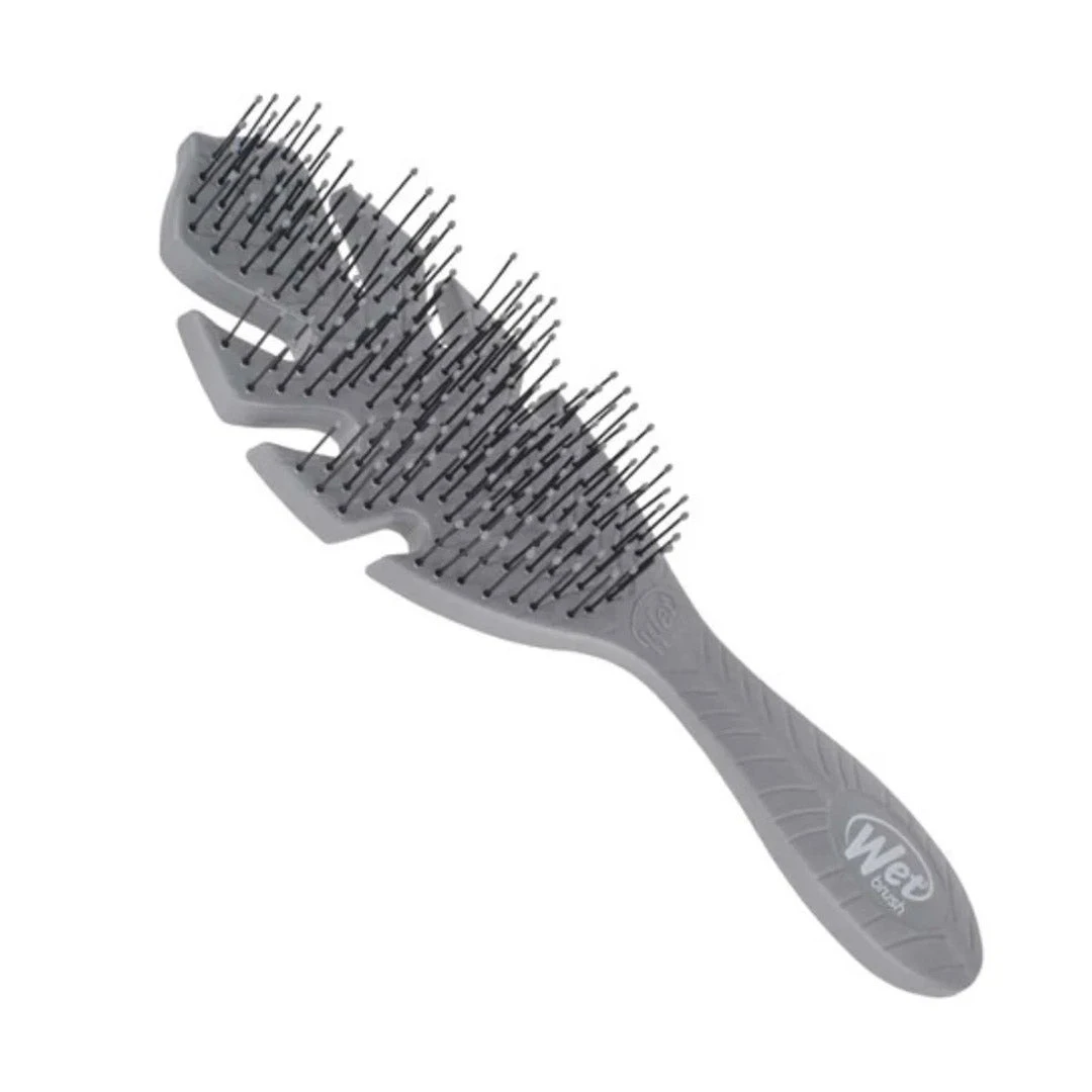 Leaf it to WetBrush! WetBrush takes their Original Detangler and goes green. Detangle hair without hurting the environment with the WetBrush Go Green Detangler Hair Brush in Grey Leaf. With leaf-shaped brush head, this brush is made from 100% plant-based plastic. Exclusive, ultra-soft IntelliFlex bristles glide through wet or dry hair with painless ease, letting you brush with less force.