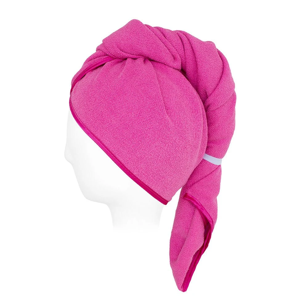 Ugly Swan Unicorn Microfibre Hair Towel Pink provides gentle fast drying of wet hair, curved back moulds to your head. Our hair towels dry hair faster than cotton. No friction damage. Holds seven times its weight in water and stays securely on your head with its large elastic loop. One size fits all.