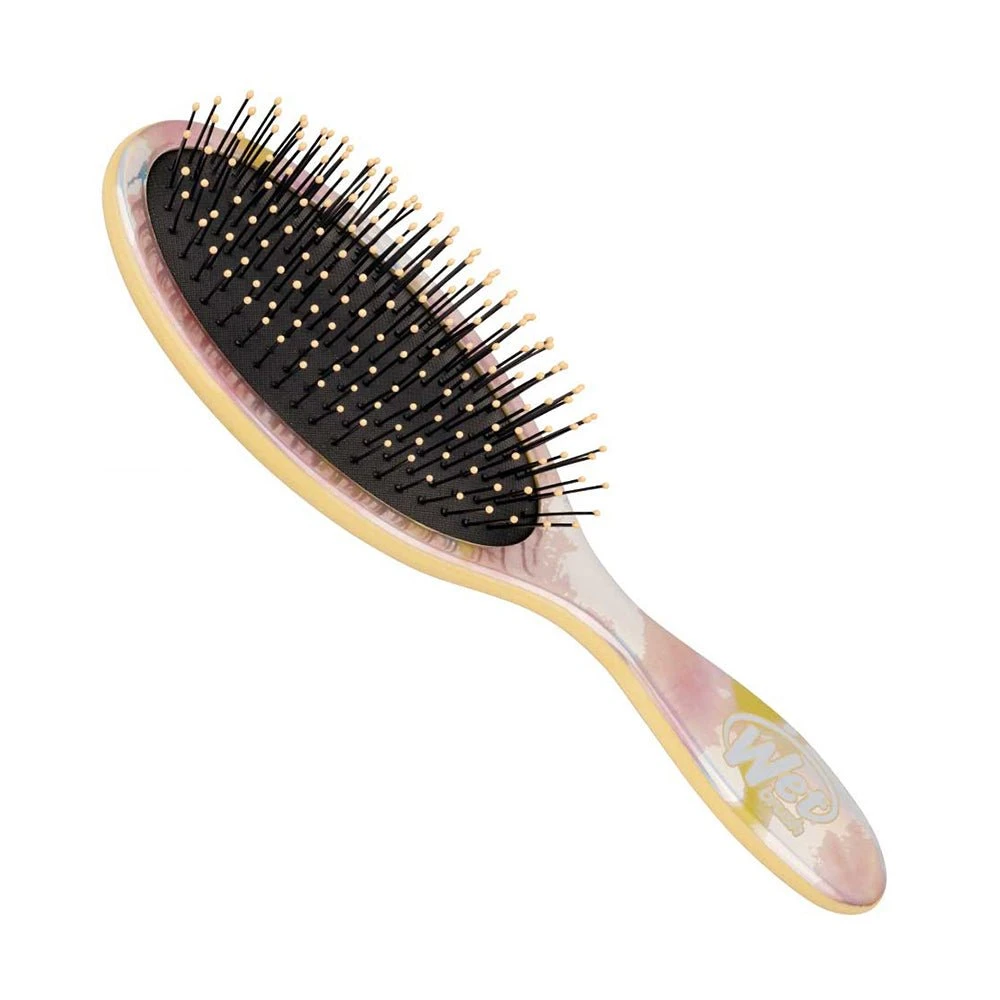 Wet Brush Watercolour Tie Dye Detangler Brush Peach featuring exclusive IntelliFlex bristles which loosen knots and tangles on wet or dry hair, without pulling or snagging. Letting you brush with less force resulting in less damage.